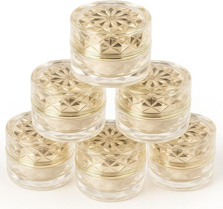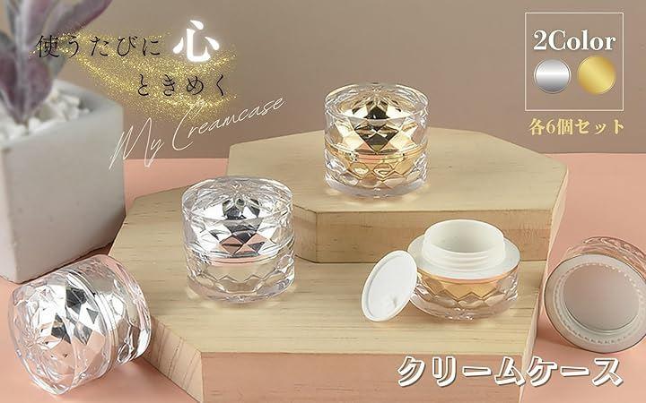 「高級感あふれる詰め替え用クリームケース」6個セットのシルバーとゴールドのクリームケースは、華やかなクリスタルカットデザインで、見た目も機能も優れたアイテムです。