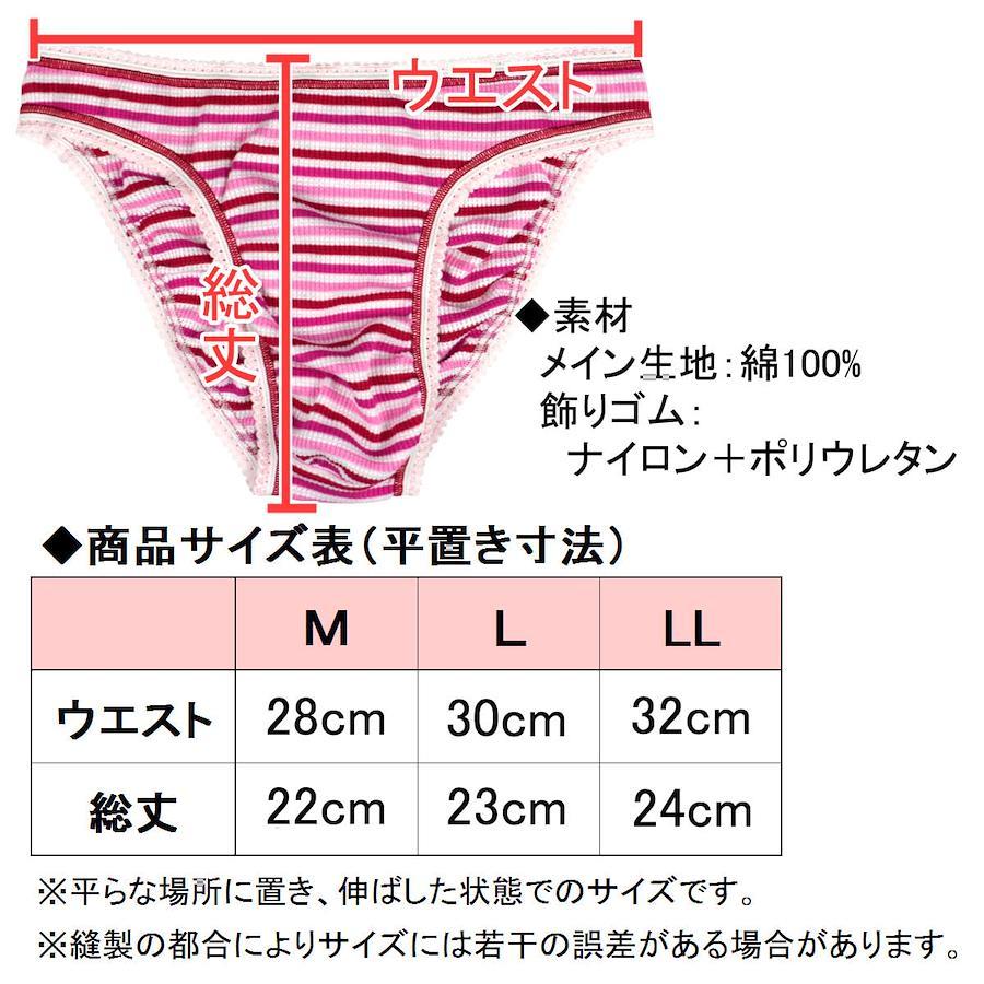原産国 日本メール便(日本郵便)でのお届けとなります日本製 メイン生地:綿100% 飾りゴム:ナイロン+ポリウレタン ※サイズの表記は平置き寸法です。M:ウエスト28cm / 総丈22cm(適応ウエスト76~84)L:ウエスト30cm / 総丈23cm(適応ウエスト84~94)LL:ウエスト32cm / 総丈24cm(適応ウエスト94~104)(#lf)(#lf)(#lf)商品購入前に、ストア紹介ページをご確認ください。