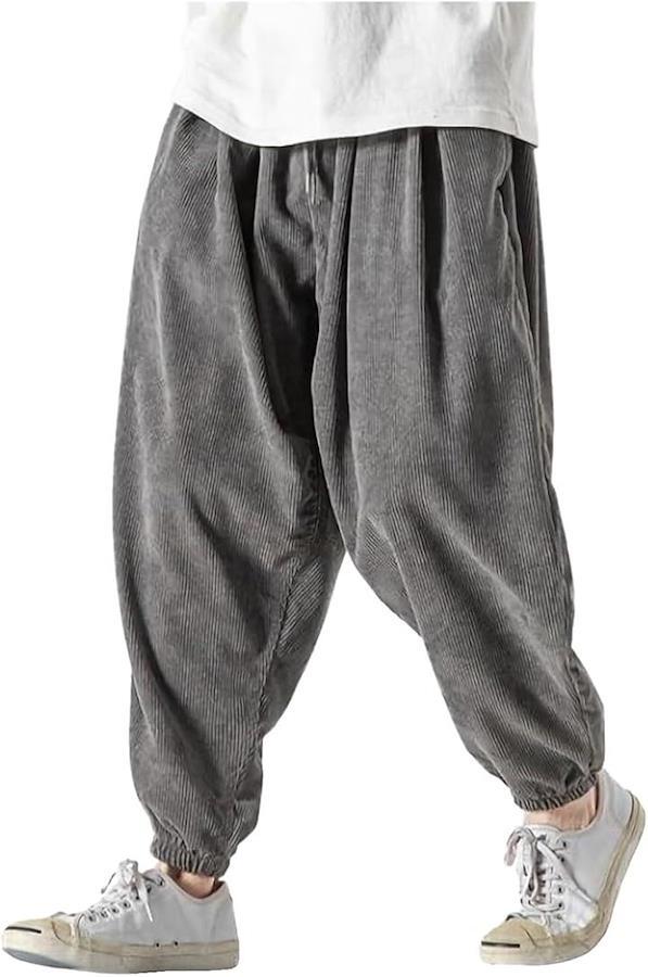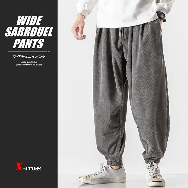 クロス サルエルパンツ メンズ 大きいサイズ ロング ワイドパンツ コーデュロイ ゆったり ポケット ズボン バギーパンツ ストリート アウトドア ファッション ジョガー かっこいい カジュアル 無地原宿系 韓国 部屋着 厚手 ビッグシルエット