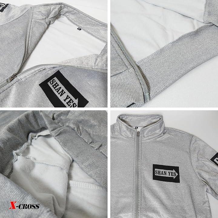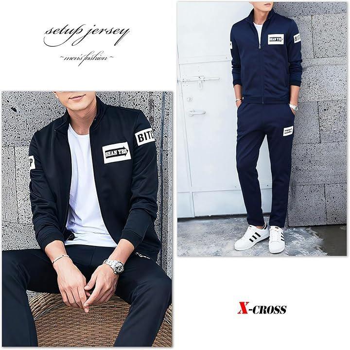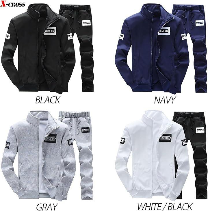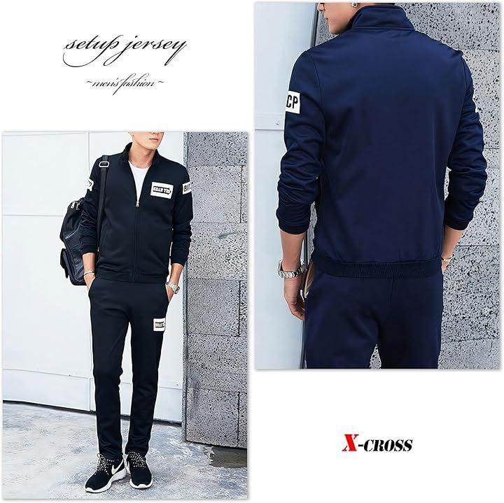 クロス スポーツウェア 上下セット メンズ ジャージ おしゃれ 裏起毛 トレーニング ジム 軽量 暖かい 長袖 カジュアル フルジップ ファスナー ロングパンツ ウエストゴム ドローコード イージー フリース 防寒 リラックス ゆったり