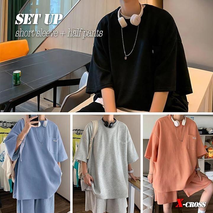素材 ポリエステル 軽やかな素材で軽快にに動けるクルーネックシャツとハーフパンツのセットアップ。