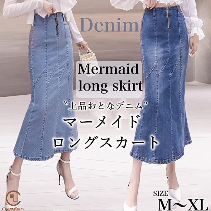 フェミニンな女性らしい魅力が惹き立つマーメイドシルエットのデニムロングスカート。