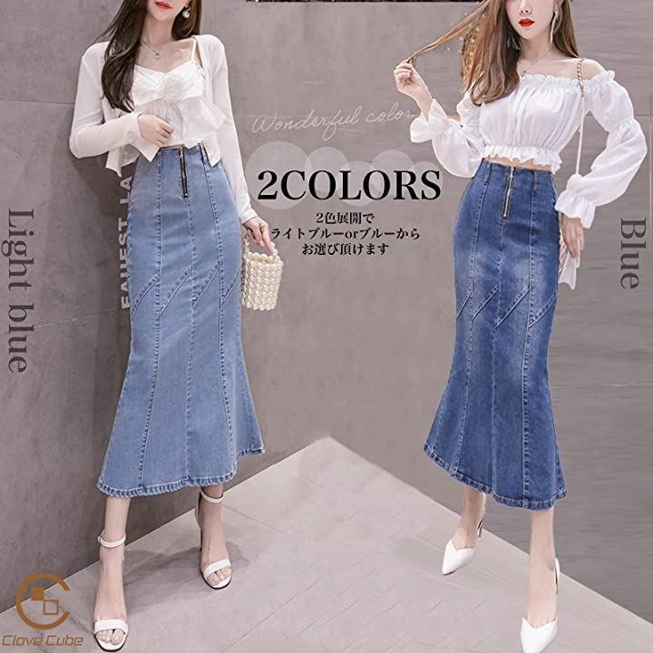 フェミニンな女性らしい魅力が惹き立つマーメイドシルエットのデニムロングスカート。