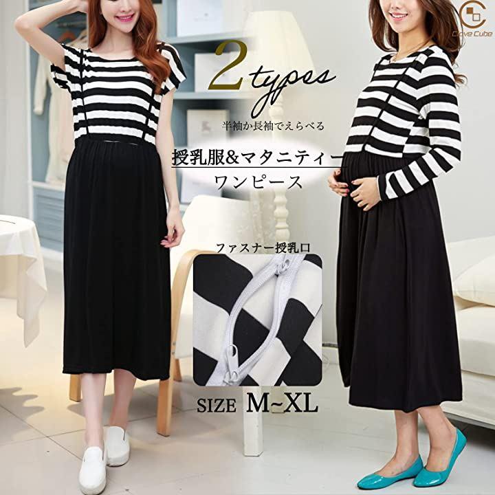 「クローブキューブ」マタニティ授乳ワンピース半袖&長袖2タイプ