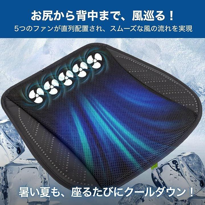 「5つの内蔵ファンで強力送風」 座面に内蔵された5個の高性能ファンが、効率よく送風して熱を逃がし、長時間座っていても蒸れにくく快適です。