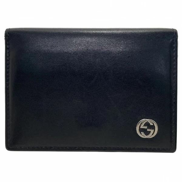 グッチ カードケース インターロッキングG 名刺入れ レザー 革 ブラック 黒 115223 GUCCI GG ダブルG カードホルダー カード入れ IC ID パスケース 定期入れ 通勤 通学 ブランド小物 【中古】