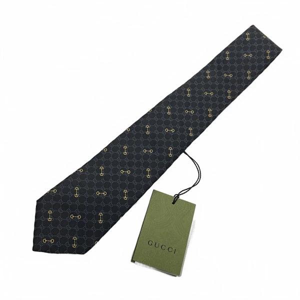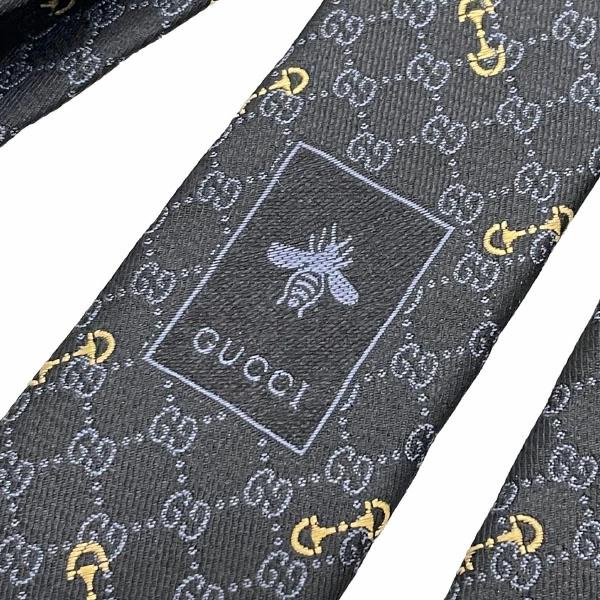 グッチ ネクタイ GG シルク100% ブラック 黒 グレー 744379 GUCCI ホースビット ビジネス スーツ ブランドネクタイ 服飾小物 メンズ 男性 紳士 父の日 誕生日 プレゼント ギフト 箱付き【未使用】
