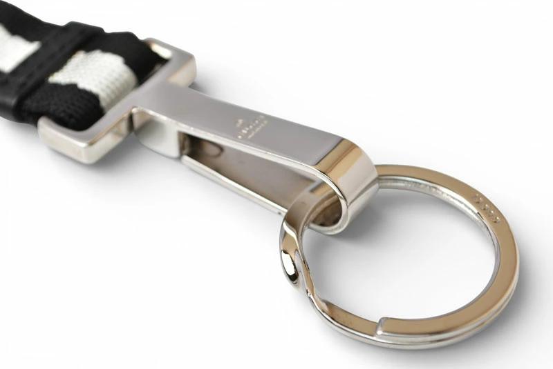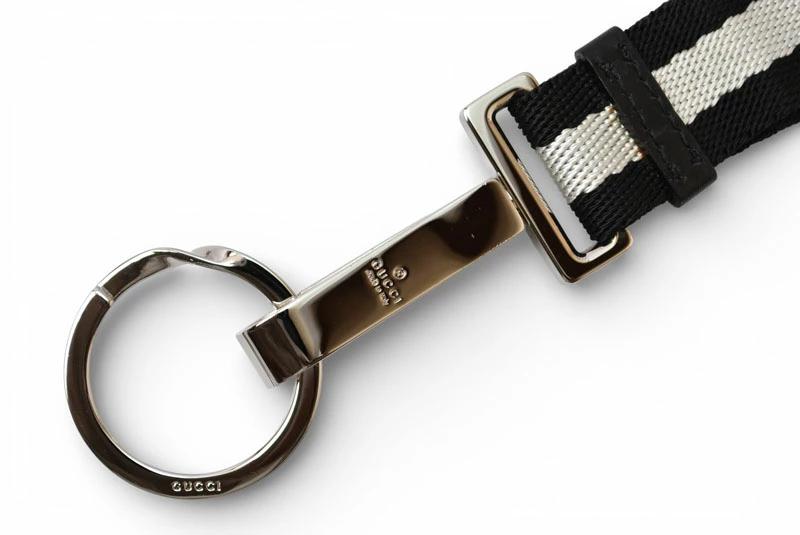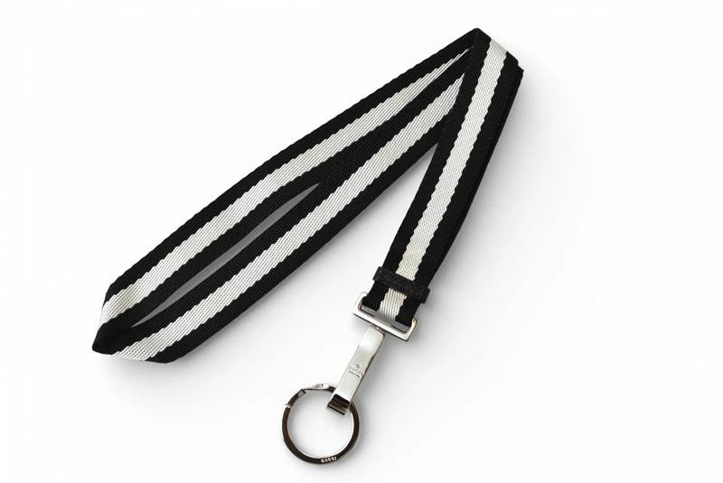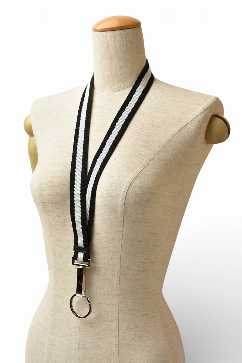 グッチ ネックストラップ キーリング付 GUCCI ウェビングライン ブラック/ホワイト 【中古】