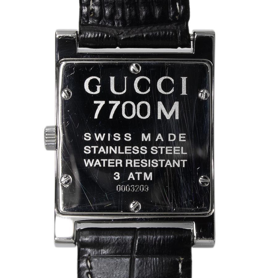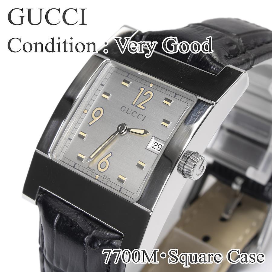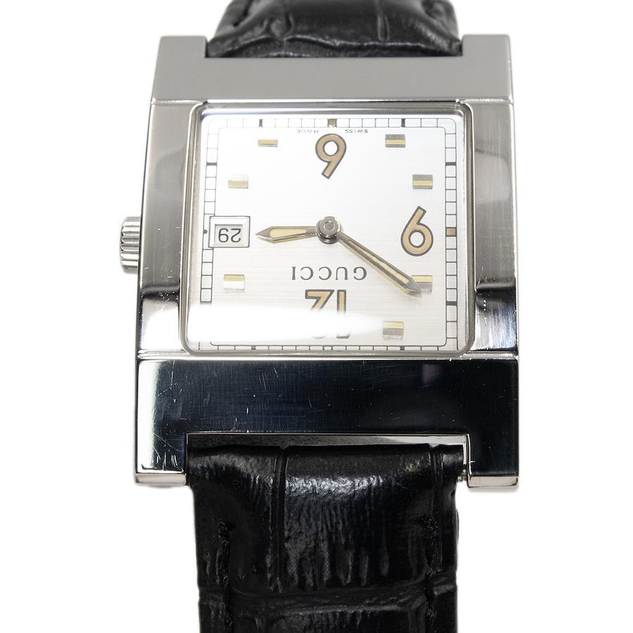こちらは装いを問わず腕元をスタイリッシュに引き締めてくれる、グッチの腕時計でございます。