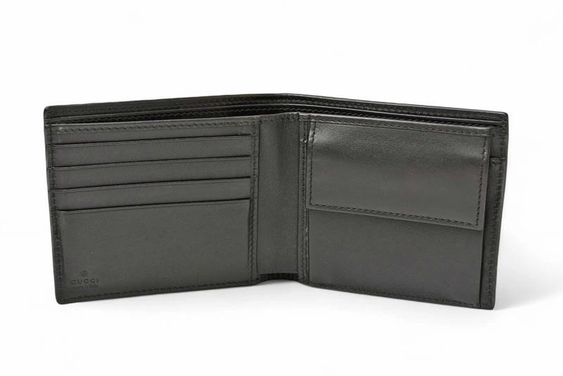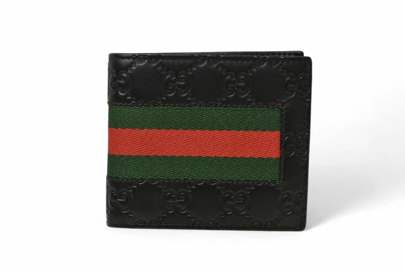 商品説明 | グッチより、使いやすくて人気の折財布です。人気モデル、グッチシマレザーを使用した二つ折り財布。ブラックレザーに型押しされたGGパターンが高級感を演出し、アクセントとなるウェブライン(グリーン×レッド)が存在感を引き立てます。 |
