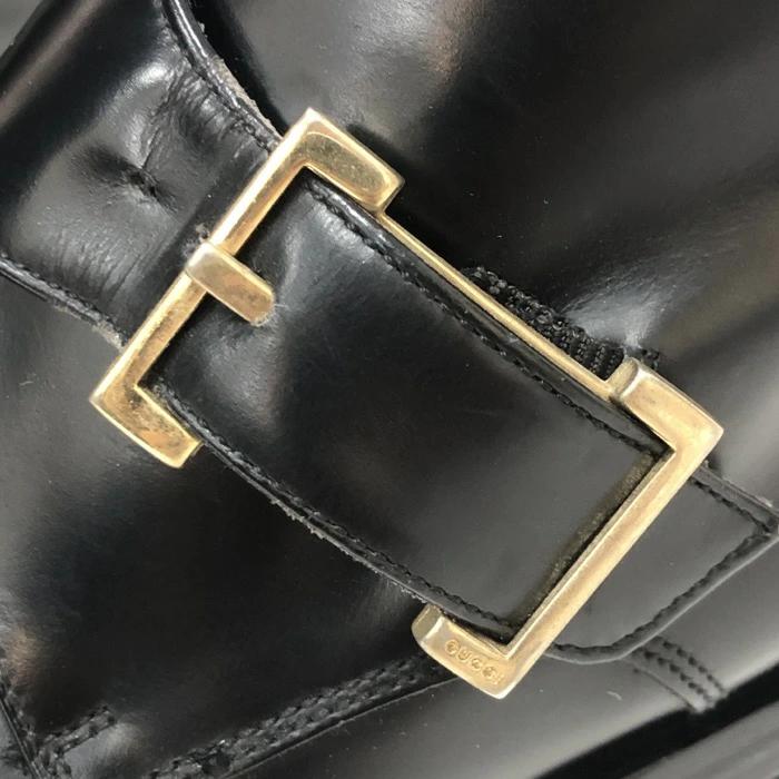 【管理番号】 015345s【ブランド名】 GUCCIグッチ【商品名】【アイテム】 ショートブーツ ラウンドトゥ ベルトデザイン モンクストラップ【型番】【サイズ】表記 35 1/2(22.5cm相当) 筒丈:約8.5cm ヒール:約4.5cm【色・柄】 ブラック【素材】 レザー【付属品】【外観ランク】Bランク【内観ランク】【商品補足説明】 シワ・擦れ・汚れあり。金具に変色・傷あり。