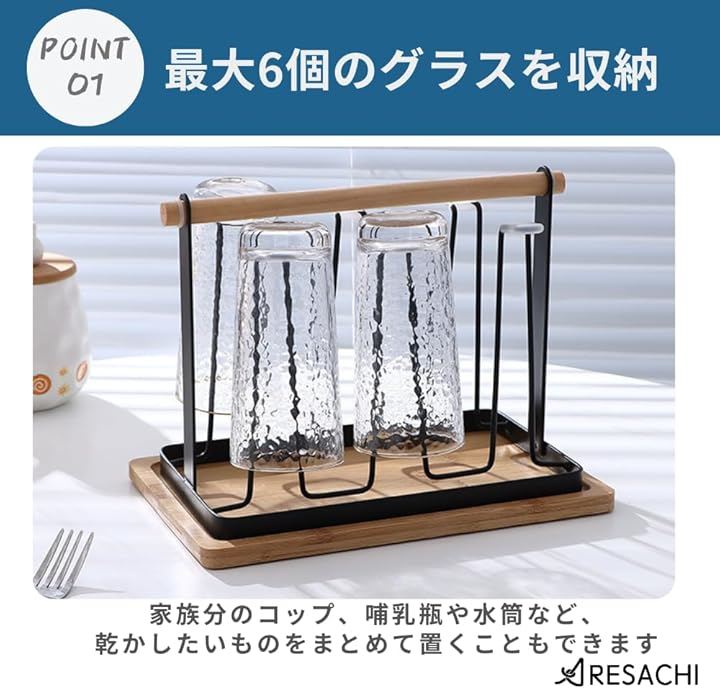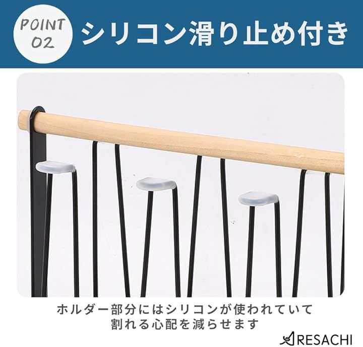「最大6個のグラスを掛けられる」6つのホルダーがあり、グラスやコップをまとめて掛けることができます。