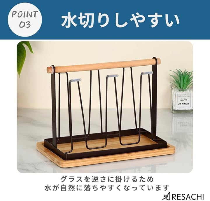 「水切りしやすい設計」グラスを逆さに掛けるので、水が自然に落ちやすくなっています。