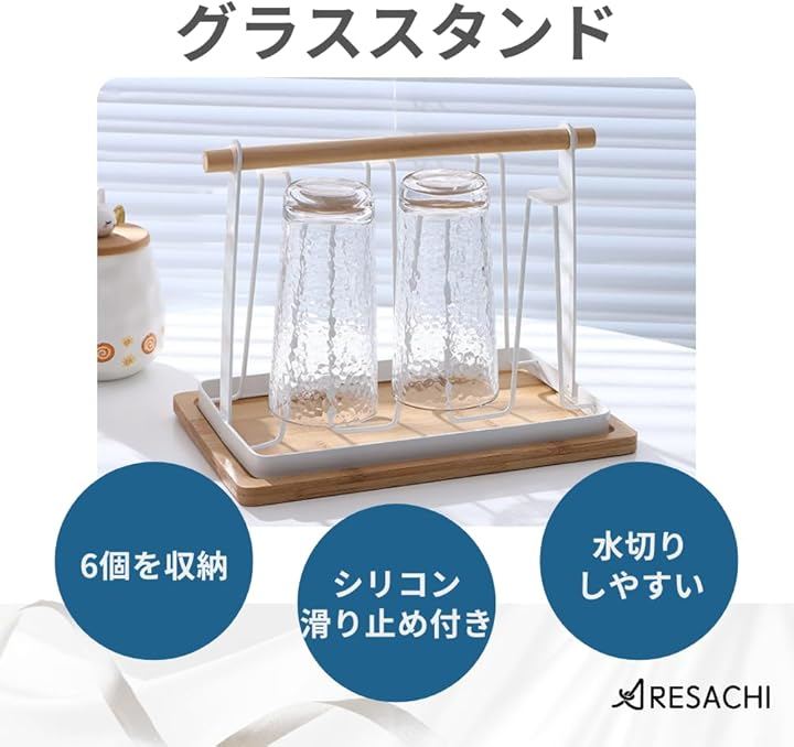 グラススタンド コップ置き グラスホルダー 水切り グラス置き 6個掛け