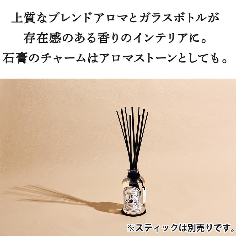 またガラスボトルについたチャームは珪藻土と石膏で作られており、使用後にはボトルから外してアロマオイル等を垂らせば引き続き香りを楽しむこともできます