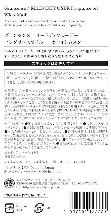 グランセンス リードディフューザー フレグランスオイル ホワイトムスク