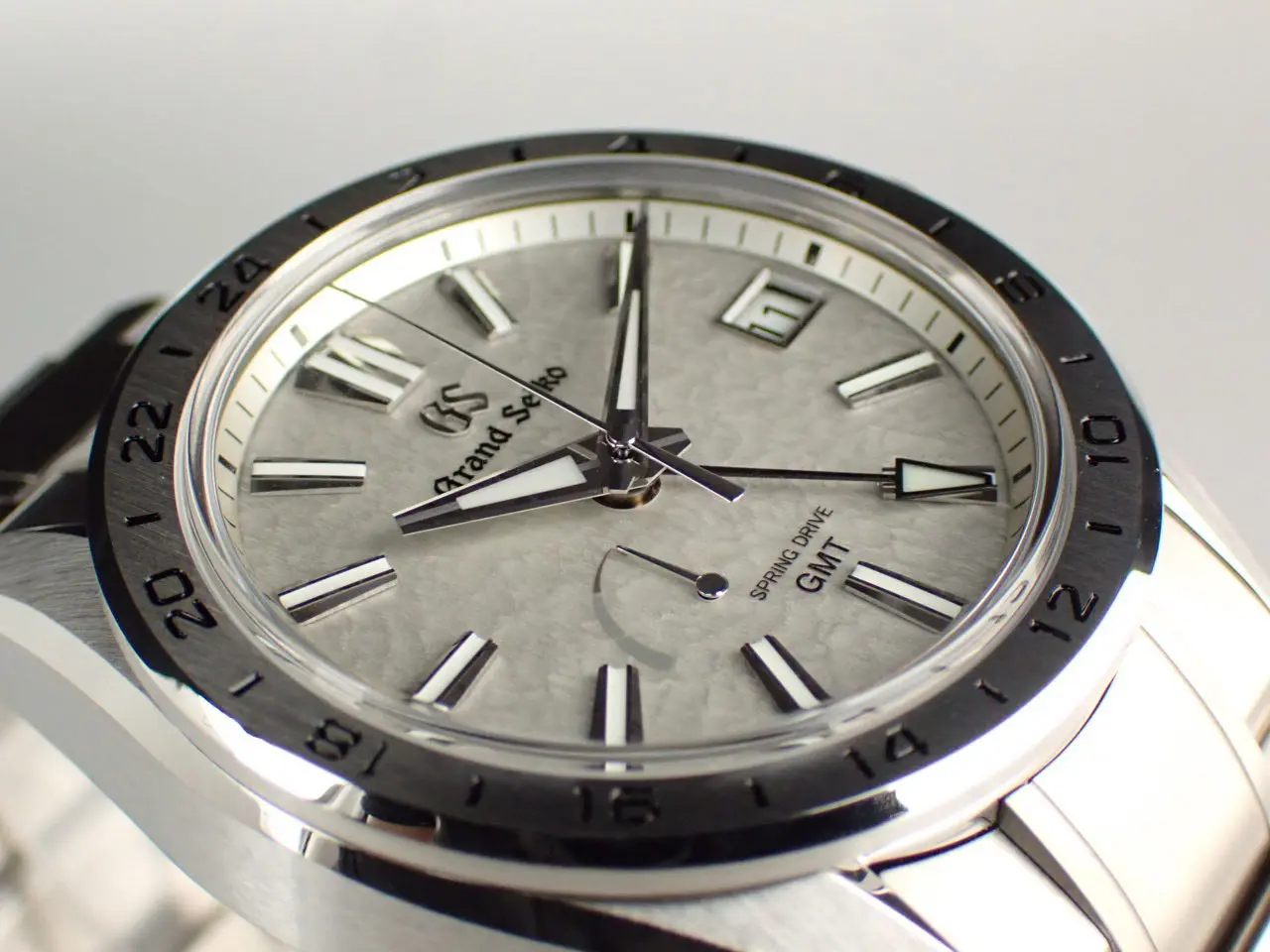 搭載ムーブメントは「9R66」。同社スプリングドライブの中でも歴史の長いキャリバーでGMT機能付き。りゅうずを一段引いた状態だと時針のみが単独で動くので、時刻の正確さを保ちながらGMT機能を使用できます。