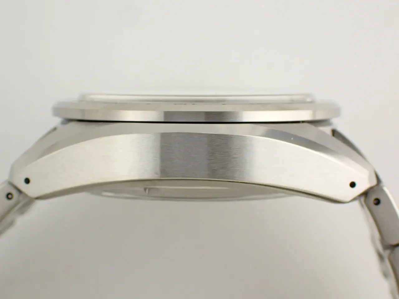 中古だが非常に綺麗な状態。時計本体やブレスのキズ等は光の角度により所々散見できる程度で、展示品・もしくは日常使用10回未満のような使用感がある状態。