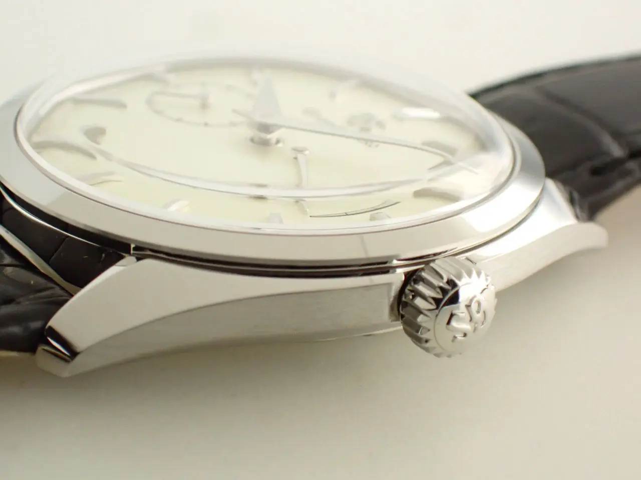 搭載ムーブメントは、手巻き式「9S63」。72時間のロングパワーリザーブに、3時位置のパワーインジケーター表示で巻き忘れが防げます。9時位置のスモールセコンドも古典的な印象ですね。機械式時計らしい手巻きの味わいと、現代の技術を集結した高性能が同居します。