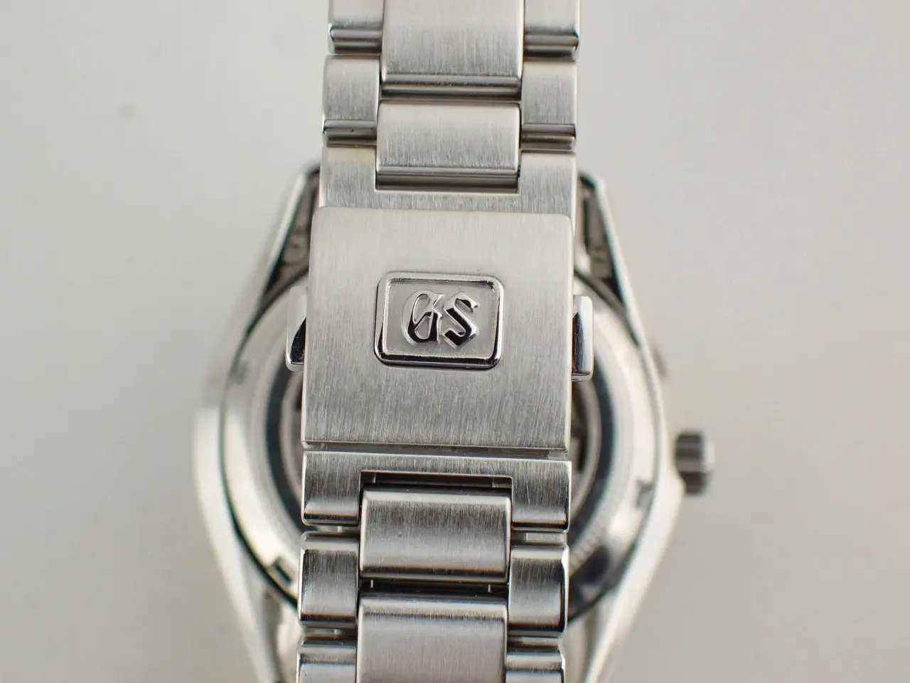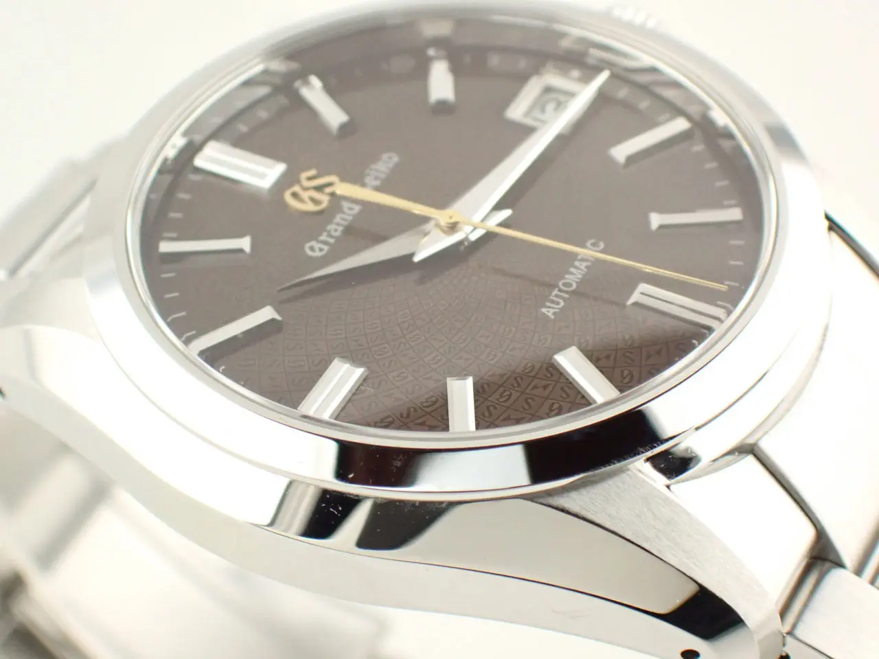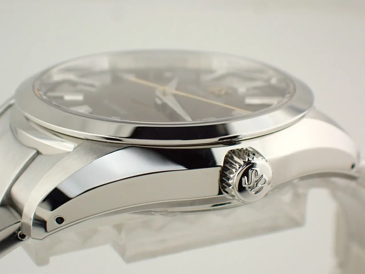 こちらの時計は、同社の歴史を支えてきた「9S」系メカニカルの誕生周年を祝した、アニバーサリーモデルです。ダイヤルカラーは、鍛冶の「火入れ」をイメージしたブラウンカラー。角度を変えると現れるモノグラムパターンは「G」「S」と、精工舎の「S」が巧みに敷かれています。丁寧に磨き分けられたラグは、サテン仕上げである内側をぐっと絞ることで、ケース径を感じさせないシャープな印象をプラス。