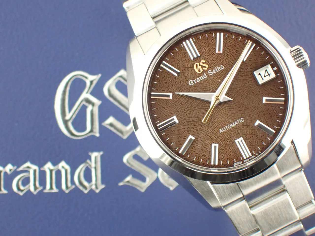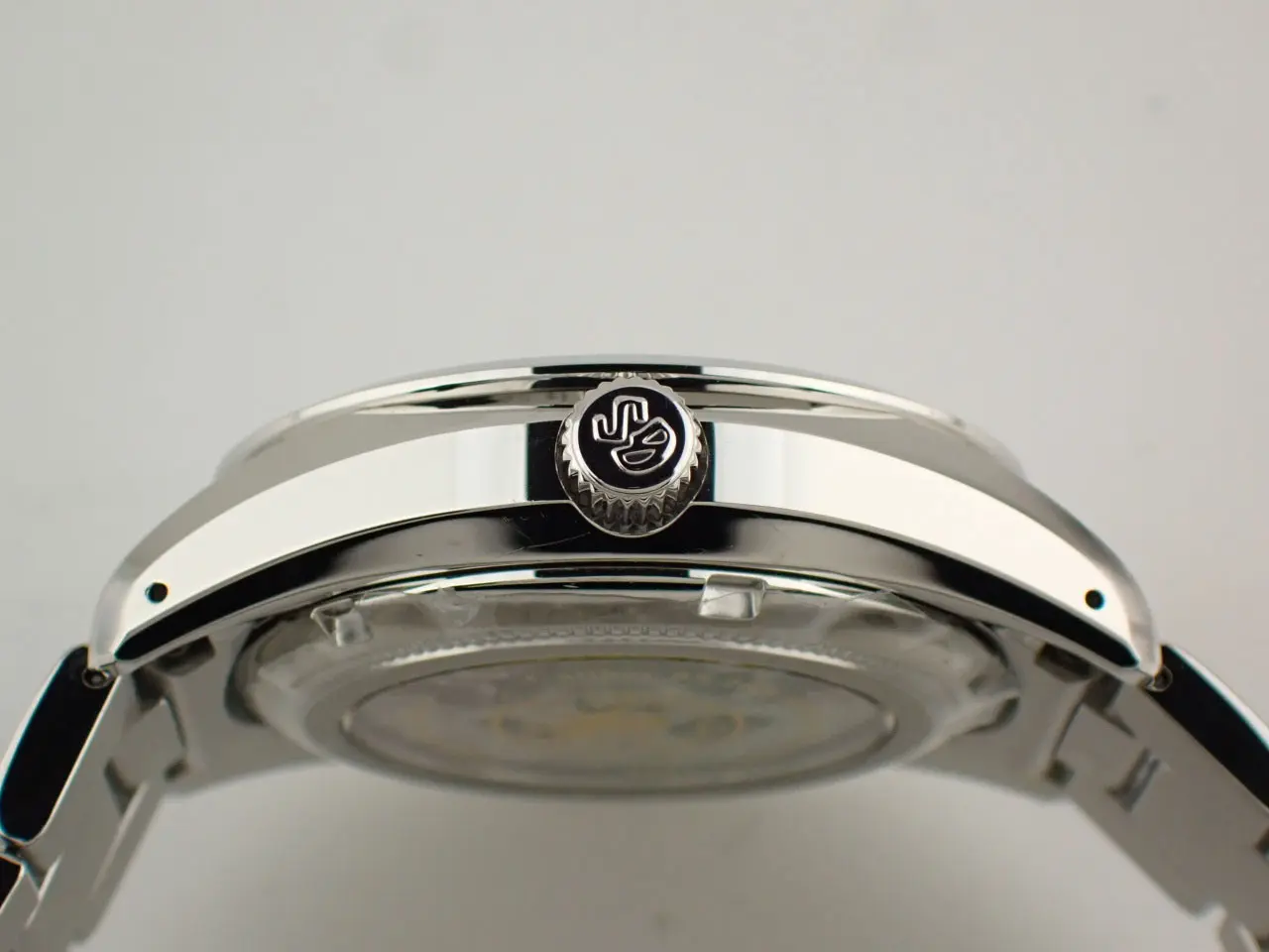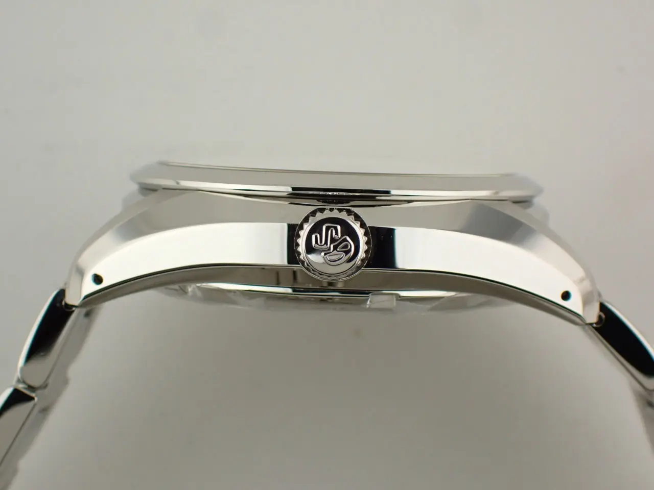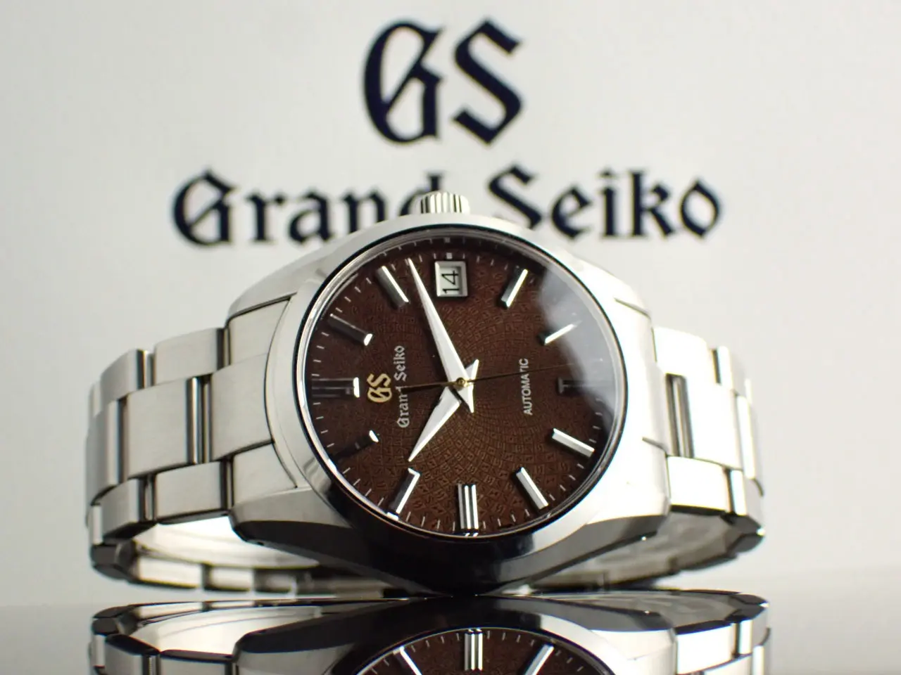 こちらの時計は、同社の歴史を支えてきた「9S」系メカニカルの誕生周年を祝した、アニバーサリーモデルです。ダイヤルカラーは、鍛冶の「火入れ」をイメージしたブラウンカラー。角度を変えると現れるモノグラムパターンは「G」「S」と、精工舎の「S」が巧みに敷かれています。丁寧に磨き分けられたラグは、サテン仕上げである内側をぐっと絞ることで、ケース径を感じさせないシャープな印象をプラス。