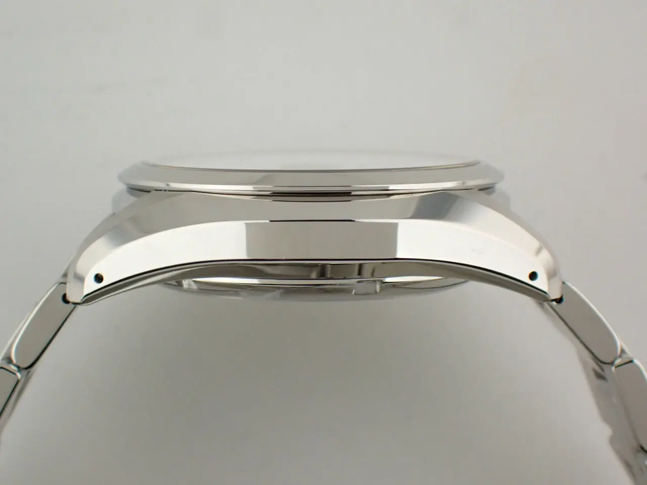 中古だが非常に綺麗な状態。時計本体やブレスのキズ等は光の角度により所々散見できる程度で、展示品・もしくは日常使用10回未満のような使用感がある状態。