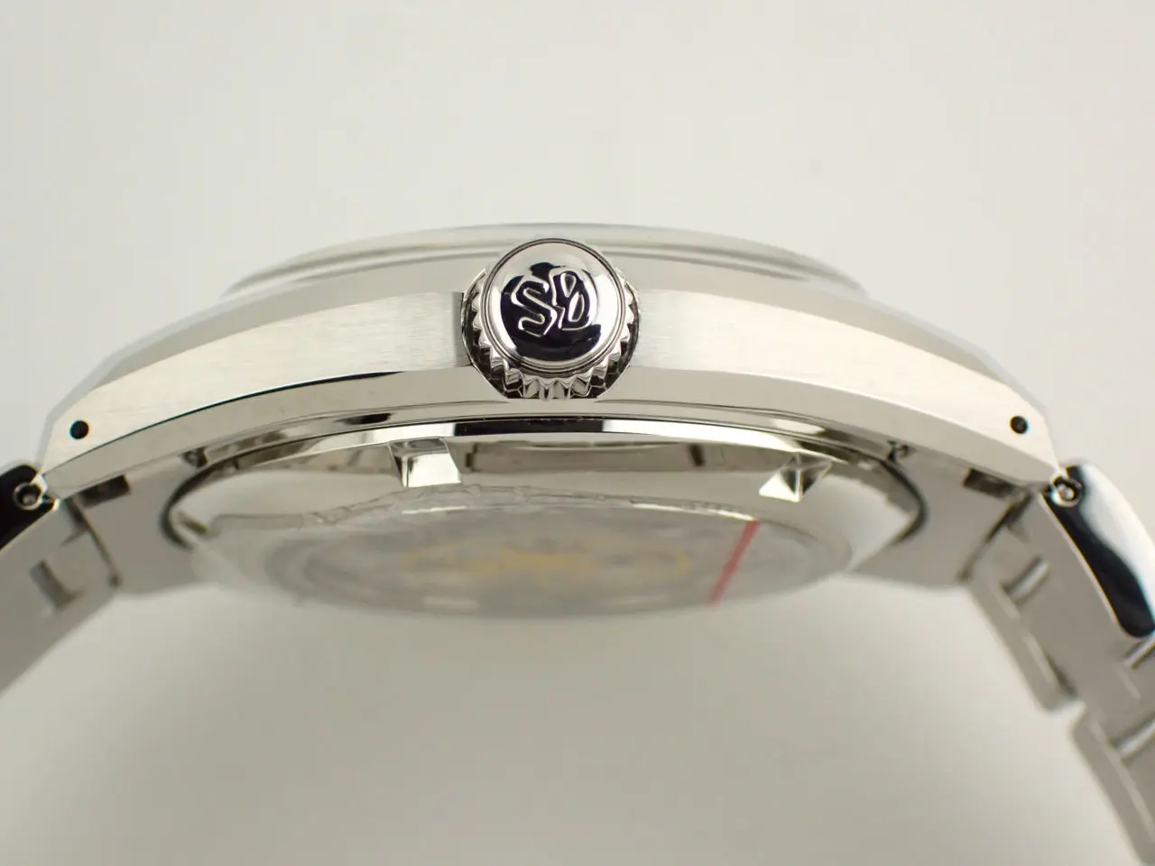 搭載ムーブメントは「9S85」。半導体製造に用いられる技術「MEMS(メムス)」により、ミクロ単位で部品を再設計。がんぎ車に中間車を挟んで、ハイビートのデメリットであるパーツの消耗を抑える工夫や、テンワの支柱を四本にすることで熱膨張による時刻のズレを防ぎます。