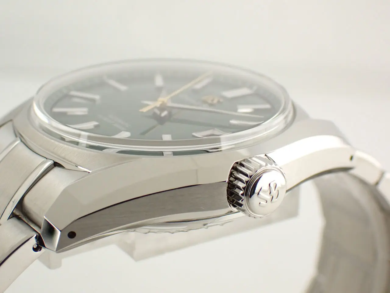 こちらは、2022年秋中国限定にて発売されたモデルの一つ。ダイヤルは不規則なストライプパターンが敷かれ、鮮やかなグリーンカラーを採用。テーマは「晴れた日の岩手山」、青々とした木々や葉が茂るイメージです。ケースは過去の名機「62GS」を現代的に解釈した、優美なデザインで。