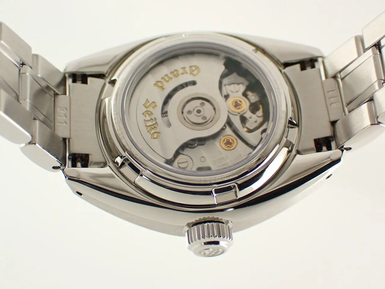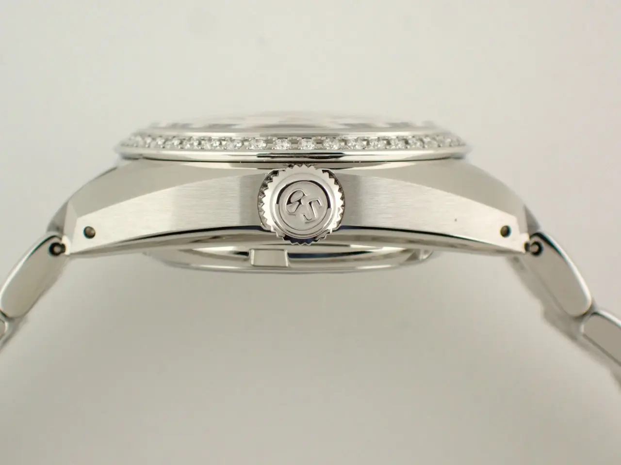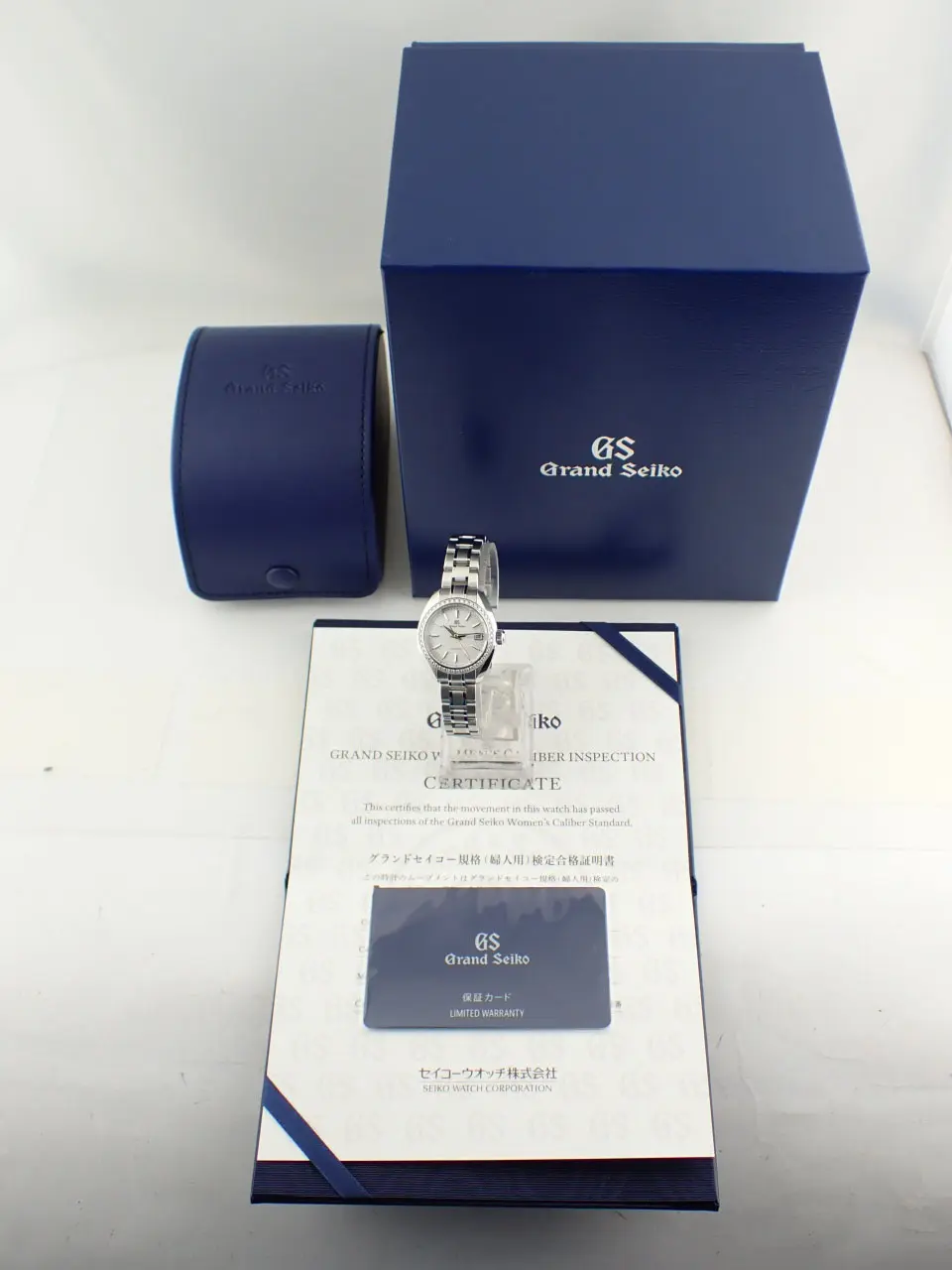 こちらは、グランドセイコーのレディースモデル。ヘリテージコレクションのメカニカル腕時計です。/n小型ながら本格的なメカニカルムーブメントキャリバー9S27を搭載。約50時間のパワーリザーブを誇ります。/n美しい絹の布のような型打模様にパール仕上げの文字盤は美しさの極み。/n華やかなベゼルはステンレススチールにダイヤモンド45個(約0.41カラット)を配しています。/nさらにサファイアガラスのシースルーバックからは、熟練の職人による美しいムーブメントの動きを鑑賞できるのも魅力。
