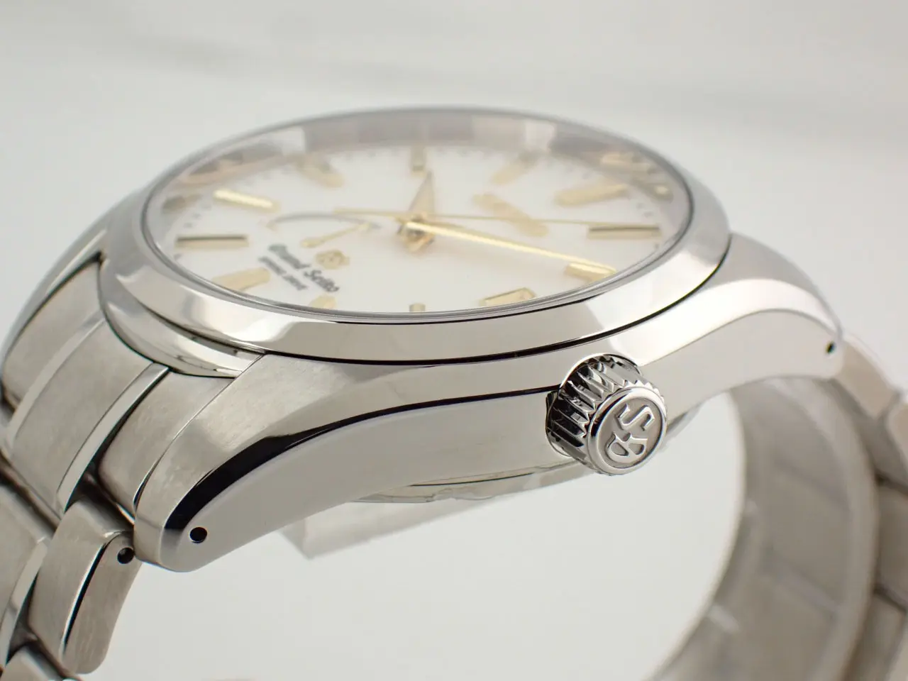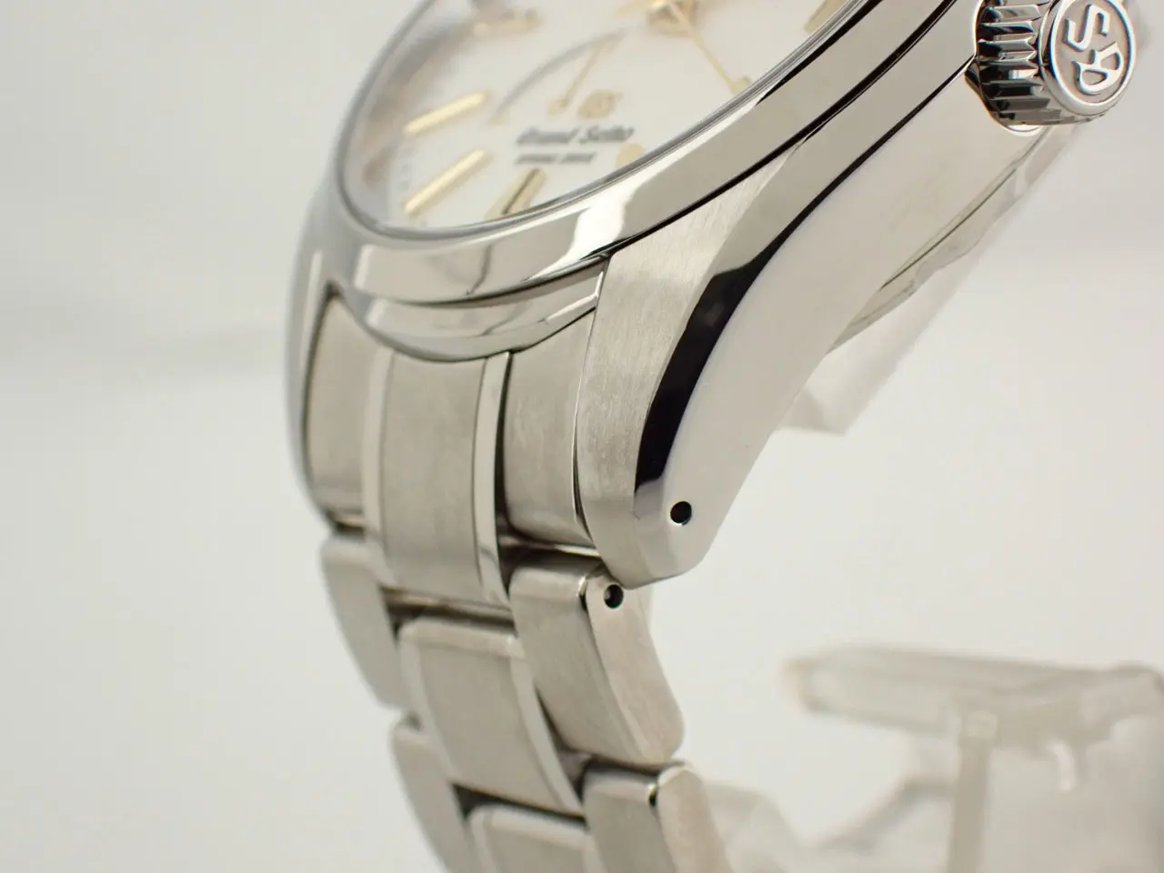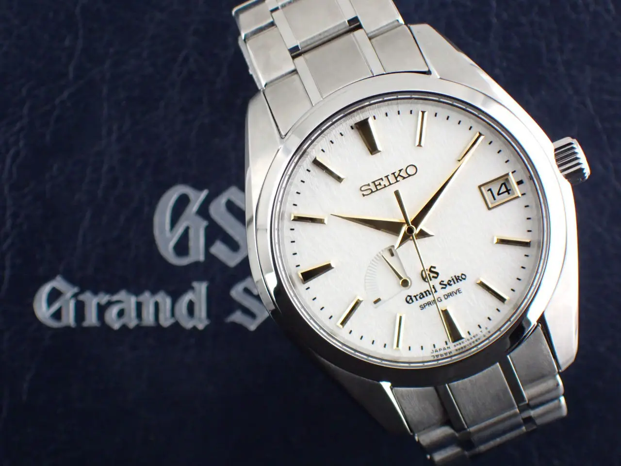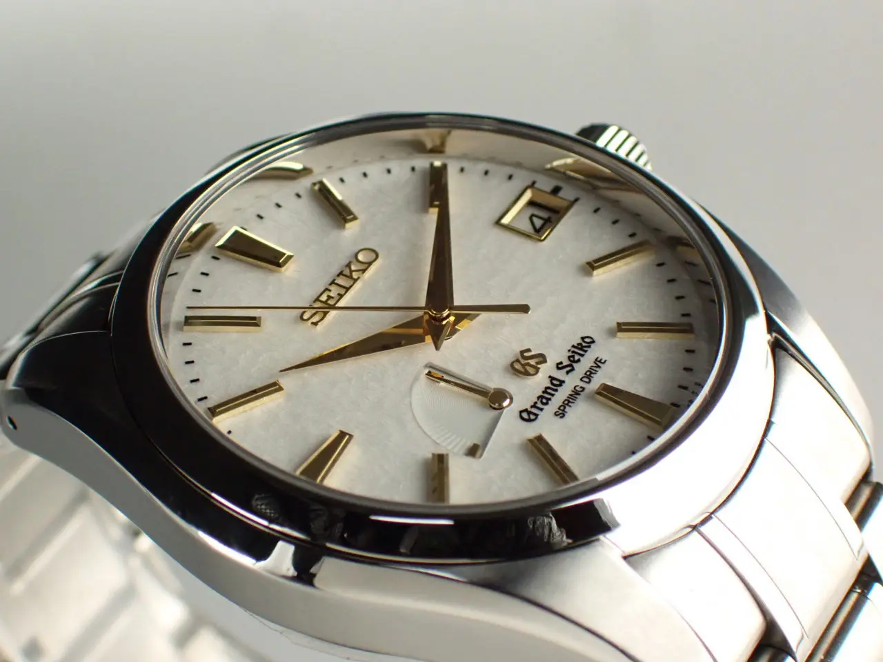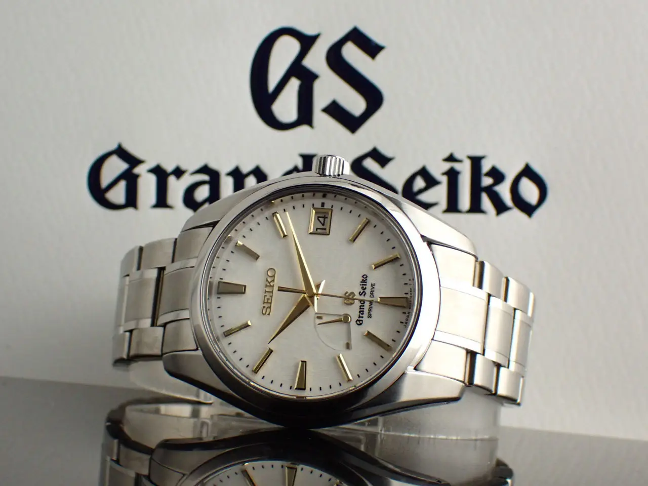 こちらは、雪白ダイヤルを採用したグランドセイコーの代表モデルです。/nマスターショップ限定・生産終了・スプリングドライブ搭載という三拍子揃った名作として根強い人気を誇ります。