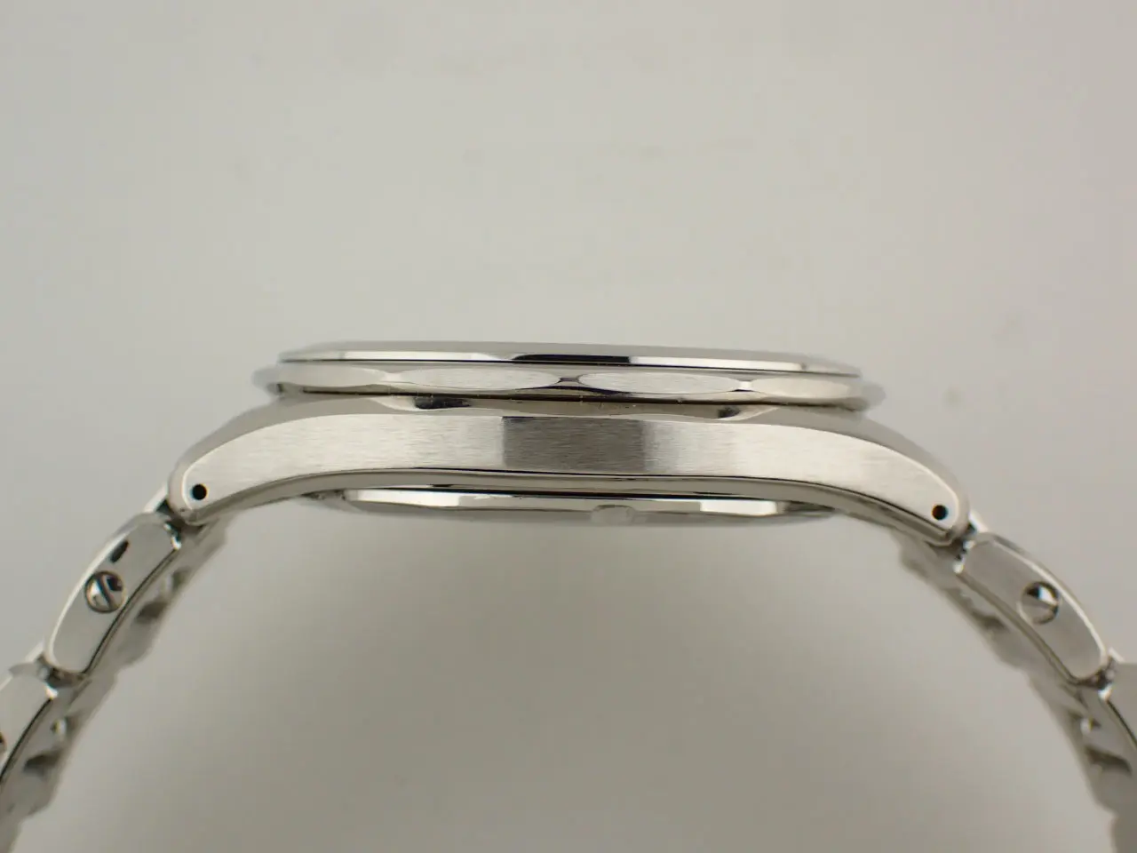 中古だが非常に綺麗な状態。時計本体やブレスのキズ等は光の角度により所々散見できる程度で、展示品・もしくは日常使用10回未満のような使用感がある状態。