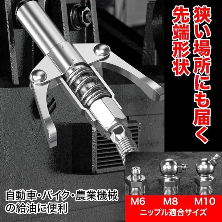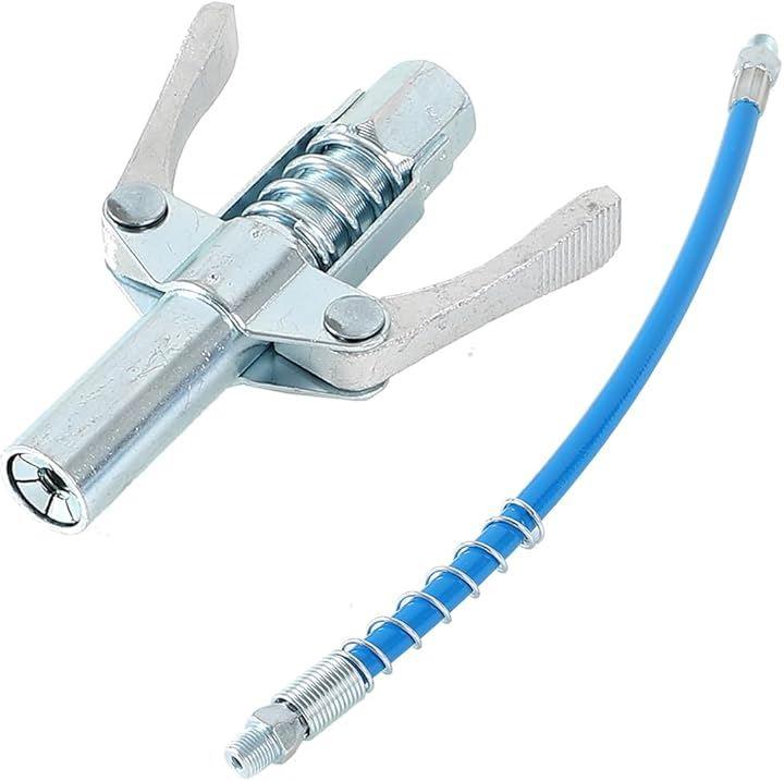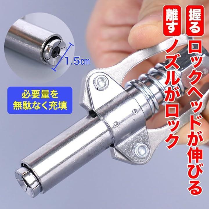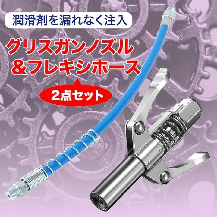 「潤滑剤を漏れなく注入」グリースガンにカップリングさせて使用するグリスガンノズル&フレキシホースの2点セット。