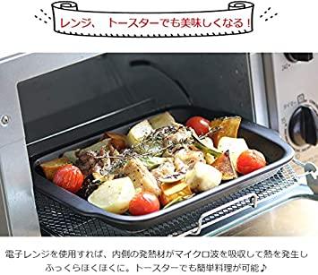 【保温力抜群!耐熱陶器プレート】両サイドに持ち手付きだから、持ち運び便利。波形が余分な油を落としてヘルシーに!陶器ならではの遠赤外線が食材をほっこり美味しく焼き上げ、簡単ながら本格的な料理を楽しむことができます。【グリルを汚さず本格料理!】焼き魚も野菜、お肉グリルもふっくらしっとり!遠赤外線効果で加熱速度が速く、均一に熱が伝わるので風味よくジューシーに。グリルの庫内には一気に熱が上がるので調理時間も短縮できます。【レンジ、トースターでも美味しくなる!】電子レンジを使用すれば、内側の発熱材がマイクロ波を吸収して熱を発生しふっくらほくほくに。トースターでも簡単料理が可能です。【そのまま食卓へ!】調理後は移し替える手間もなく、そのまま食卓へ。陶器ならではの保湿性で