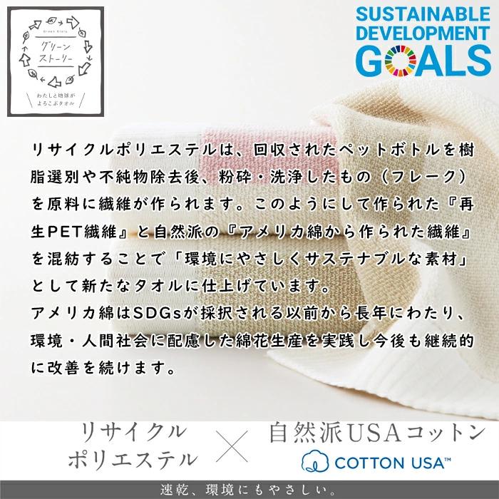 サステナブルな素材『リサイクルポリエステル』と『自然派アメリカ綿』(COTTON USATM)を紡いだ環境にやさしいタオル。