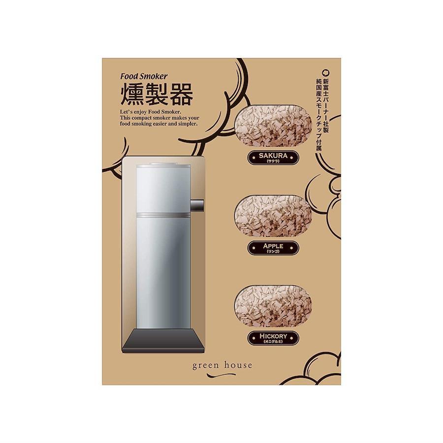 :毎日のおつまみに、ホームパーティに、アウトドアでも使い方簡、サクラ、リンゴ、ヒッコリー(オニグルミ)の3種類の国産チップが付属すぐに始められるレシピ付きコンパクト設計でどこでも持ち運び可能少量のチップで燻製ができて経済的お手入れ用クリーニングブラシを付属電源DC3.0V(単3形アルカリ乾電池×2)連続使用時間約3時間