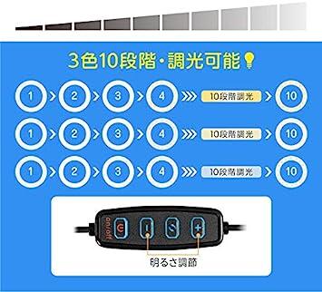 電源 DC 5V(USBポートより供給) br 消費電流 0.8A(最大) br LED灯数 48個 br 明るさ 白色:670lm、オレンジ色:640lm、同時:1100lm br 色温度 2700K~6500K br 演色性 Ra80 br ケーブル長 約190cm br 外形寸法 (全体)約 W220 × D220 × H278(mm) br (LEDライト)約 166 × H160 × D16mm br 重量 約310g(三脚を含む) br 動作温度範囲 0~50度 br 動作湿度範囲 10~70%(結露なきこと) br 保証期間 6ヶ月間 br 付属品 br LEDリングライト、三脚、取扱説明書/保証書