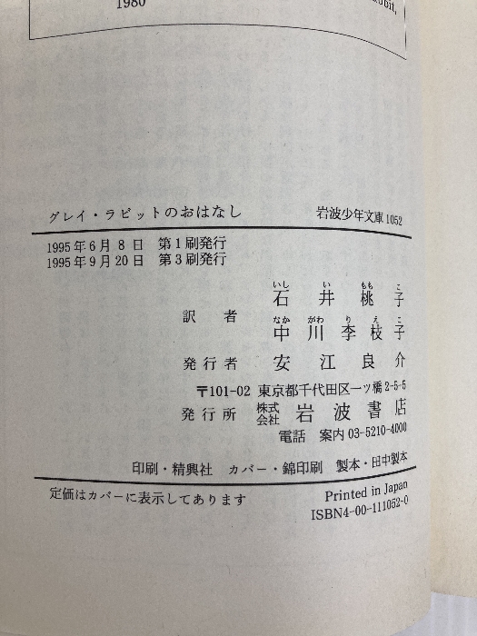 ■商品詳細■ 商品名・グレイ・ラビットのおはなし (岩波少年文庫 1052) 岩波書店 アリソン アトリー/ ■商品状態■表紙にスレ、ヤケ、天地小口にスレ、ヤケ、シミ、本にスレ、ヨレ、ヤケ、があります。本を読むことに支障はございません。※注意事項※■毎商品チェック後出品しておりますが、中古品ということもあり、多少の書き込み等のチェック漏れがあった際はご容赦下さい。■付録等の付属品がある商品の場合、記載されていない物は『付属なし』とご理解下さい。■併売販売をしているため、在庫切れの場合はキャンセルとなります。予めご了承ください。