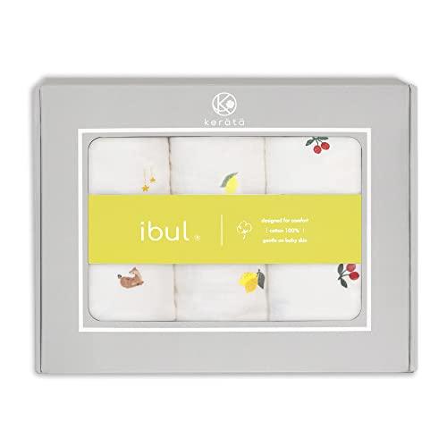 【ケラッタのイブルガーゼシリーズにおくるみセットが仲間入り!】イブルの2重ガーゼがふんわりやわらかい120×120cmのおくるみセットが登場。洗い替えに便利な3枚入りです。新生児のおくるみ巻き、お昼寝時のブランケット、ベビーカーの日よけなど、赤ちゃんの生活になくてはならないアイテムです。 【やさしい風合いのイブルガーゼ】韓国発祥の寝具「イブル」をモチーフにデザインしたガーゼシーリーズ“ibul(イブル)”。イブルの優しい風合いを生かした、やわらかくふんわりとしたガーゼケットです。2重になっている生地は空気を多く含むため保温性に優れ、水分を素早く吸収。さらに速乾性もあり、汗をかきやすい赤ちゃんも快適に使用することができます。 【かわいい3つの柄がセットに】やわらかなイブルガーゼにかわいいプリント柄を散りばめました。ケラッタのイブルシリーズでも人気の3つの柄をセットに!「バンビ」「レモン」「チェリー」各1枚ずつ3枚が入っています。 【薄手で巻きやすく、おくるみ巻に最適】毎日使うものだから、扱いやすさにこだわった、薄手の2重ガーゼを使用しました。通気性・速乾性にも優れているので、赤ちゃんの汗をたくさん吸っても蒸れにくく、お洗濯をしてもすぐ乾き、清潔にお使いいただけます。 ぎゅっとおくるみで巻くと、ママのお腹の中にいた時と同じ姿勢にしてあげられるので安心してスヤスヤ…。赤ちゃんが泣き止まなかったり、寝つきが悪い時にぜひ試して欲しい巻き方です。 【使い方色々♪正方形サイズ】おくるみだけでなく、ブランケットとしても大活躍。肌寒い日はもちろん、夏のエアコン対策にもぴったりです。大判サイズなので、成長してもずっと使えます♪ 【ギフトボックス入り】おしゃれなグレーのギフトボックスに入ってお届け♪出産祝いなどの贈り物にもおすすめです。 【サイズ】120cm×120cm【素材】綿100%
