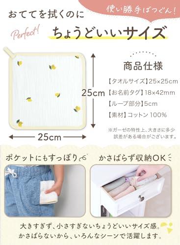 大人気イブルシリーズからループ付きのハンドタオルが登場!6重に折り重ねたガーゼが空気をたっぷりキャッチしてふんわりやわらか、心地よい肌触り♪ガーゼ素材はタオルと比べて吸水性も速乾性も◎あててにやさしくあてるだけであっという間に水気を吸い取ります。 【安心素材】敏感な肌のお子さまが使うものだから、素材はもちろんコットン100%♪ホルマリン検査も合格済みなので安心してご利用いただけます。 【お洗濯でさらにふんわり】洗濯機OKなのでお手入れカンタン♪お洗濯でさらにふんわりするので、使うほど、洗うほどふんわり育ちます。 ※生地の性質上洗濯により多少縮む場合があります ※乾燥機のご使用はお避け下さい 【園の指定もクリア!保育園にぴったり】保育園や幼稚園で必須のハンドタオル。使いやすいようこだわりました!マジックで書いてもにじみにくいネームタグ付き♪ループ部分もお子さまの小さな手でひっかけやすい大きさです。ポッケにもすっぽり入るので保育園にもぴったり♪ 【毎日選ぶのが楽しい5枚セット】柄×無地の5枚セット。「今日はどれにしようかな~」なんて楽しく選べちゃう♪柄は人気のケラッタオリジナルイブル柄がちりばめられています。