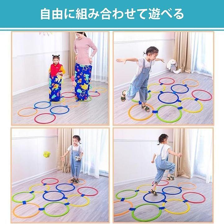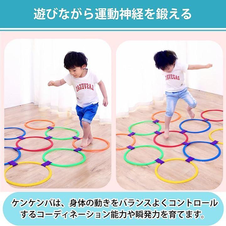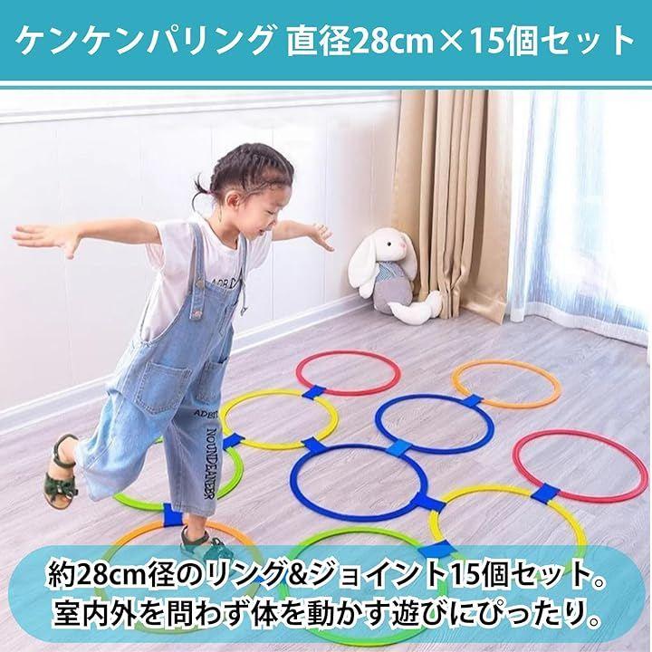 「室内/屋外どちらでも遊べる28cmケンケンパリング」約28cm径のリングが15個セットで、室内外を問わず体を動かす遊びにぴったり。