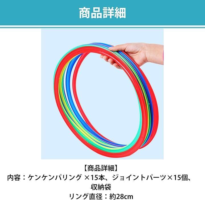 「商品詳細」内容:ケンケンパリング x15本、ジョイントパーツx15個、収納袋 リング直径:約28cm