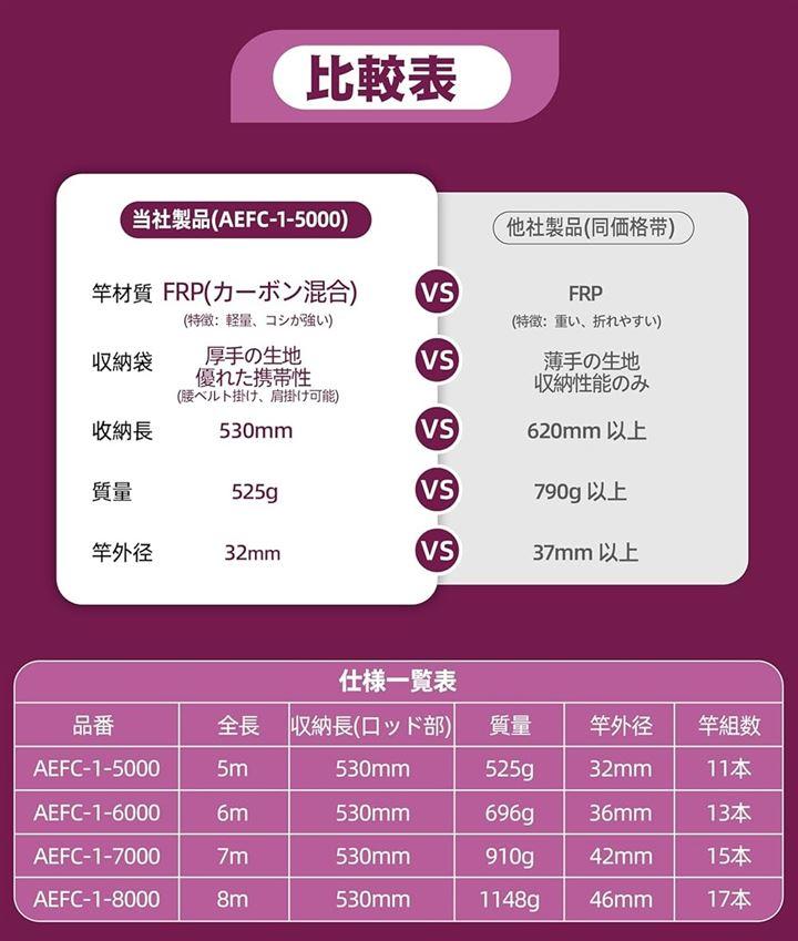・手元竿素材:GFRP ・伸長時長さ:8m ・収納時長さ(ロッド部):53cm