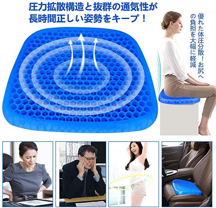・「超柔らかい&変形にくい」日本のメッシュ弾性ソフトキャンディーゲル技術を採用して、ジェルクッションは卵を置いて座っても割れないほどのクッション性があります。