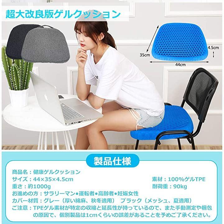 ・「大きいサイズ&2個セット」従来サイズ41X34X4cmのゲルクッションと比べて、サイズは44X35X4.5cmに大きくなりました。