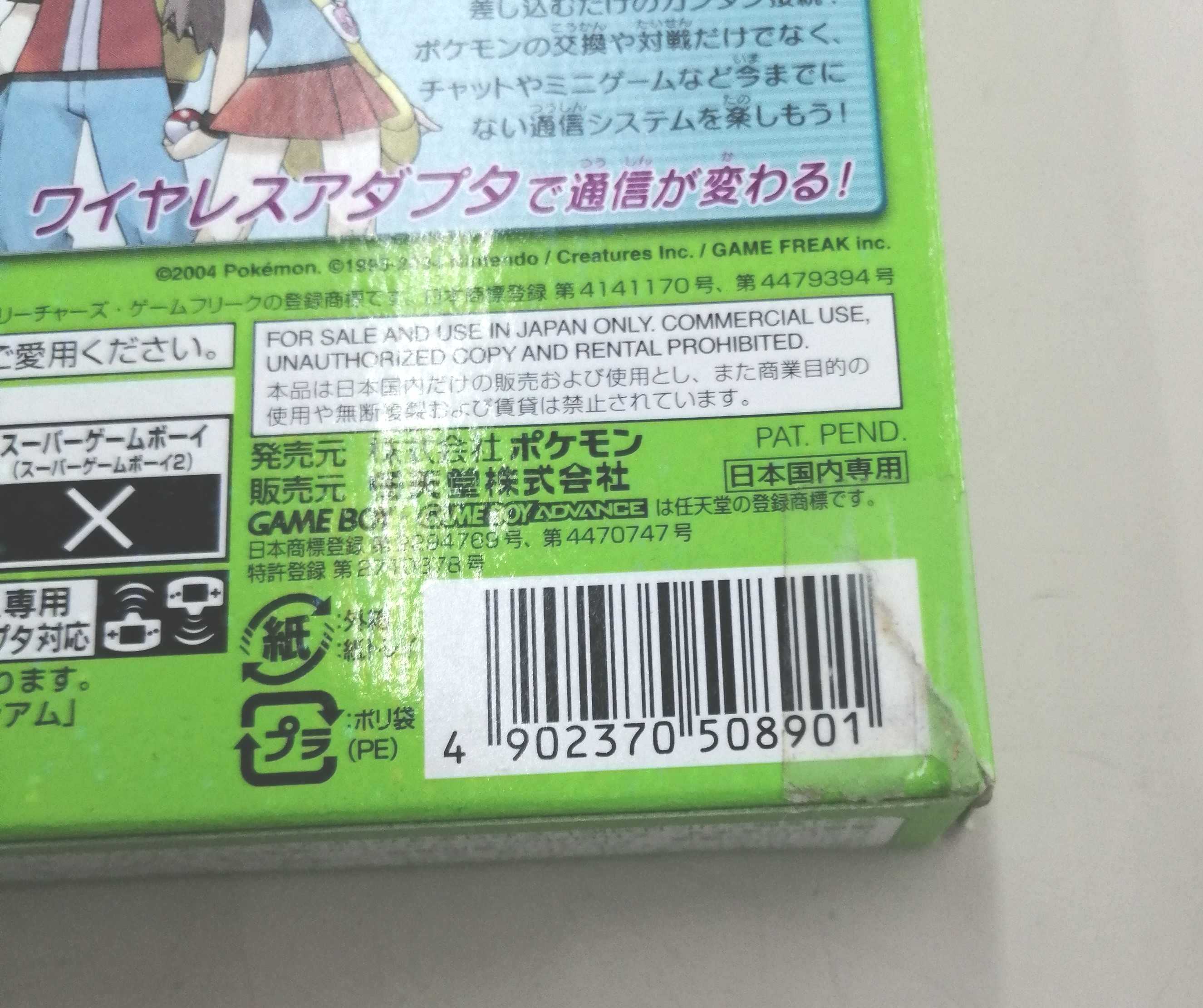 ■特徴・備考ゲームボーイアドバンスソフト「ポケットモンスター リーフグリーン」です