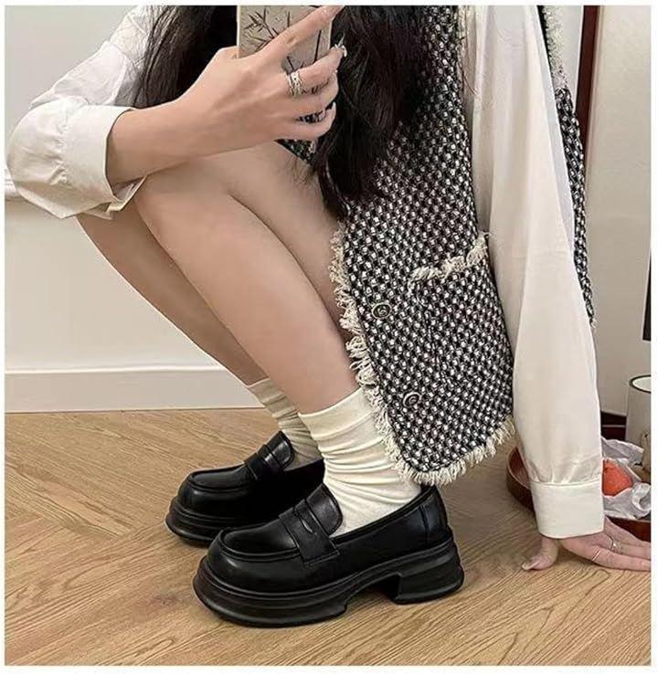 厚底のレディースパンプス、太ヒールで安定感抜群。