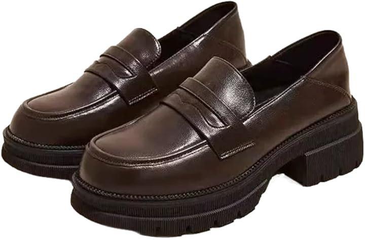 厚底のレディースパンプス、太ヒールで安定感抜群。