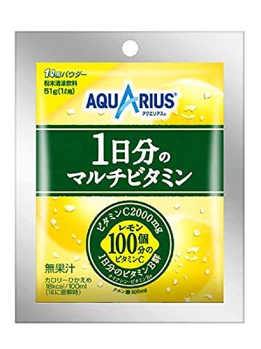 家庭内ストックや持ち運びに便利なパウダータイプの『アクエリアス 1日分のマルチビタミン』が新登場。 レモン100個分のビタミンCと1日分のビタミンB群(ナイアシン、ビタミンB6)、クエン酸を配合し、運動中や日常生活でのスムーズな水分補給が可能です。 後味すっきりのレモンフレーバーで、カロリーひかえめ(18kcal/100ml※1Lに溶解時)な、粉末清涼飲料です。 1袋で1L分のアクエリアス 1日分のマルチビタミンをお楽しみいただけます。