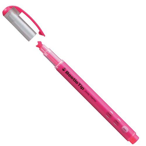 ●カブトムシの角の形のようなペン先1つで、太線・細線・二重線(囲み線)の3種類の線が引けます。従来品のように、ペン先を使い分けるためにペンの上下を持ち替える必要がありません。