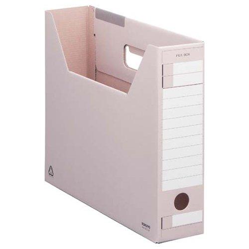 コクヨインターグレイシリーズのファイルボックス。傷みやすいボックス正面の部分を折り返し、補強しました。(補強は片側のみ)●カラー/ピンク●サイズ/A4横スリム●寸法/奥行317×高さ260×背幅75mm●材質/ダンボール(古紙配合)●ワンタッチ底●単位(入数)/1パック(5個入)●メーカー品番/A4-SFD-P×5